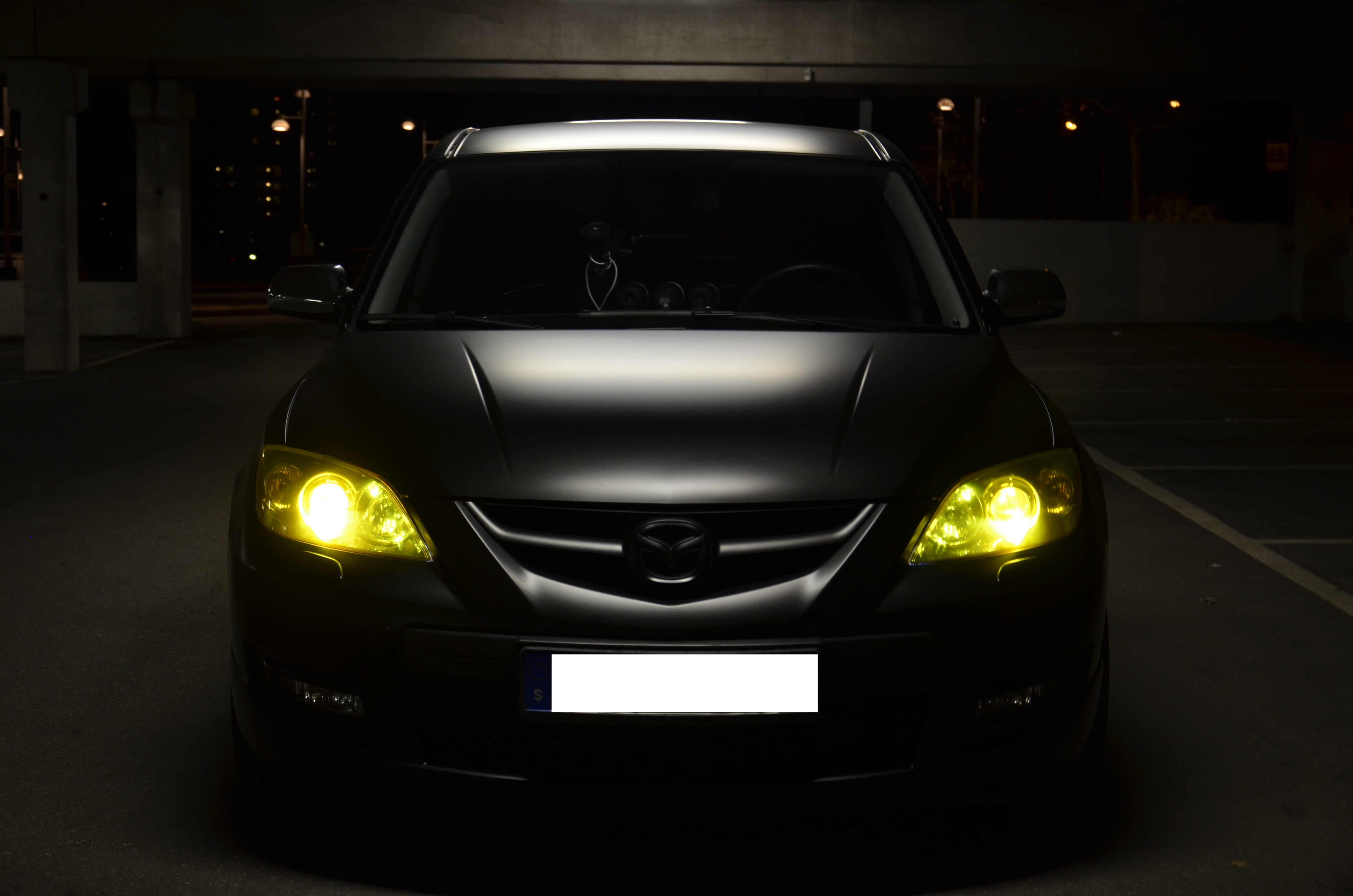 ProShield™ -Strålkastarfilm Gul 0,5mm Mazda 3 MPS på framlampor. Mattsvartfolierad.